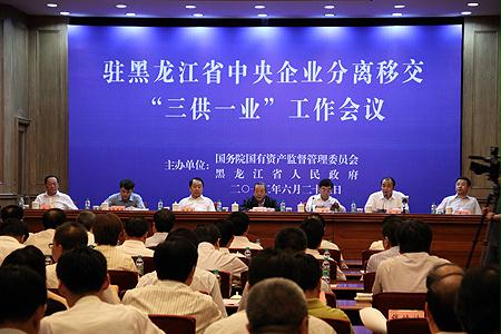 為推進中央企業(yè)分離辦社會職能,做好駐黑央企分離移交“三供一業(yè)”(供水、供電、供熱和物業(yè)管理)工作,6月28日上午,國務(wù)院國資委與黑龍江省人民政府在哈爾濱共同召開駐黑龍江省中央企業(yè)分離移交“三供一業(yè)”工作會議。國務(wù)院國資委副主任、黨委副書記邵寧和黑龍江省人民政府副省長張建星出席會議并講話。黑龍江省政協(xié)黨組副書記、省國資委黨委書記趙克非和國務(wù)院國資委副秘書長郭建新出席了會議。會議由黑龍江省人民政府省長助理、省國資委主任趙杰主持。會上,哈爾濱市政府介紹了分離移交“三供一業(yè)”有關(guān)政策及經(jīng)驗;哈電集團、中航工業(yè)東安公司、兵器工業(yè)集團、國家電網(wǎng)代表有關(guān)中央企業(yè)作了發(fā)言;國務(wù)院國資委與黑龍江省人民政府簽署了《關(guān)于駐黑龍江省中央企業(yè)分離移交“三供一業(yè)”工作協(xié)議》,有關(guān)企業(yè)與接收單位簽訂了《分離移交協(xié)議》。