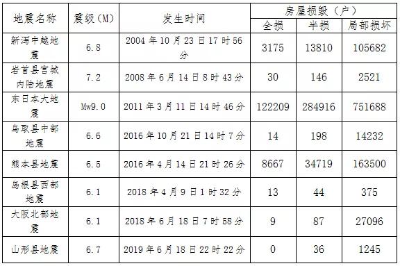 一、日本山形地震與我國長寧地震傷亡損失對比 2019年6月17日22時55分,我國四川省宜賓市長寧縣(北緯28.34度,東經(jīng)104.90度)發(fā)生了里氏6.0級地震,震源深度16千米。一天后的6月18日21時22分(北京時間),日本山形縣海面(北緯38.6度,東經(jīng)139.5度)發(fā)生了里氏6.7級地震,震源深度14千米。兩次地震前后相繼,都屬極淺型地震,且都發(fā)生在夜里,但兩次地震的傷亡損失卻差別很大。 根據(jù)中國國家應(yīng)急管理部發(fā)布的災(zāi)情信息,截至6月19日6時,長寧地震已造成16.8萬人受災(zāi),因災(zāi)死亡13人,受傷199人,緊急轉(zhuǎn)移安置1.59萬人,初步調(diào)查有2.2萬戶房屋倒塌損壞。而根據(jù)日本內(nèi)閣府6月21日7時發(fā)布的災(zāi)情消息,山形地震震區(qū)有32人受輕傷,1人受重傷,沒有發(fā)現(xiàn)因地震死亡人員,秋田縣、山形縣、新瀉縣共有145棟房屋受損,沒有重要設(shè)施損壞,沒有出現(xiàn)避難者。從地震發(fā)生時日本電視新聞的報道中可以看到,地震造成地面強烈晃動,但居民仍然圍坐在家中,沒有任何驚慌,屋頂瓦片震落,但房屋主體基本不受地震影響。 此次長寧地震震級為6.0,震源深度16千米,山形地震震級為6.7,震源深度14千米,山形地震釋放的能量大約是長寧地震的15倍,地震強度遠高于長寧地震,但是卻沒有出現(xiàn)因地震而發(fā)生的死亡、房屋倒塌和重大損失事件。同樣發(fā)生高強度的地震,日本的傷亡損失比我國小得多,這和日本行之有效的防災(zāi)救災(zāi)體系是分不開的。 二、日本地震防災(zāi)救災(zāi)體系的特點 一 房屋建筑抗震性能好 房屋建筑倒塌數(shù)量少是日本地震傷亡人數(shù)少的一個重要原因。1923年的關(guān)東大地震傷亡慘重,日本政府深刻反思,開始高度重視增強房屋的抗震性能,于1924年修訂《城市建筑物法》,規(guī)定了各類重要設(shè)施和民用建筑必須遵守的抗震標(biāo)準(zhǔn)。1950年出臺的《建筑基準(zhǔn)法》對建筑的抗震標(biāo)準(zhǔn)提出了更嚴格的要求。此后,日本政府不斷從發(fā)生的大地震中總結(jié)經(jīng)驗教訓(xùn),分別于1981年、1995年、2006年對《建筑基準(zhǔn)法》中的建筑物抗震條款進行重大修訂,不斷改進和提高建筑物抗震標(biāo)準(zhǔn),并在配套的法規(guī)中詳細規(guī)定了實施層面的關(guān)鍵環(huán)節(jié),例如,一項建筑工程確定開工前,必須提交由具備一級建造師及以上資格的技術(shù)人員編制的建筑抗震能力報告書,報告書中要求根據(jù)不同的地震強度,計算不同的建筑結(jié)構(gòu)在地震中受力的大小,并依此確定建筑物的梁柱位置、承重及鋼筋混凝土配比等。此外,日本自20世紀80年代修訂《建筑基準(zhǔn)法》開始,重新檢查所有1981年以前完成建筑的抗震標(biāo)準(zhǔn),抗震性能不足的建筑由政府補貼資金實施改造修繕。2006年,日本政府對所有高層公寓和飯店展開抗震強度檢查,以確認有無設(shè)計數(shù)據(jù)造假以及其他建筑質(zhì)量問題。 在嚴格的法律體系和執(zhí)行措施的保障下,日本房屋建筑尤其是高層和超高層建筑大都應(yīng)用基礎(chǔ)隔振技術(shù),能夠抵御7級以上強烈地震,在地震中倒塌的危險性大大降低。近些年日本大地震的房屋損毀情況如表1所示。 表1 日本近年主要大地震房屋損毀情況表 注:表中數(shù)據(jù)來源于日本內(nèi)閣府歷年發(fā)布的《災(zāi)情公報》 日本房屋建筑良好的抗震性能使得地震發(fā)生時可以最大程度地保證屋內(nèi)人員的人身安全,人員傷亡的數(shù)量大幅減少。如2008年6月14日8時43分發(fā)生的巖首縣內(nèi)陸地震,震源位于巖首縣南部,距離地表只有8km,震級為7.2級,震源淺、強度大,但這樣一次規(guī)模巨大的地震僅造成17人死亡,且大都是在室外因地震引發(fā)的山體滑坡、設(shè)施破壞、交通事故等遇難,沒有一個是因房屋倒塌致死的。 日本明治以后主要大地震的死亡及失蹤人口情況見下表2。 表2 日本明治以后主要大地震災(zāi)害死亡及失蹤人數(shù)情況表
