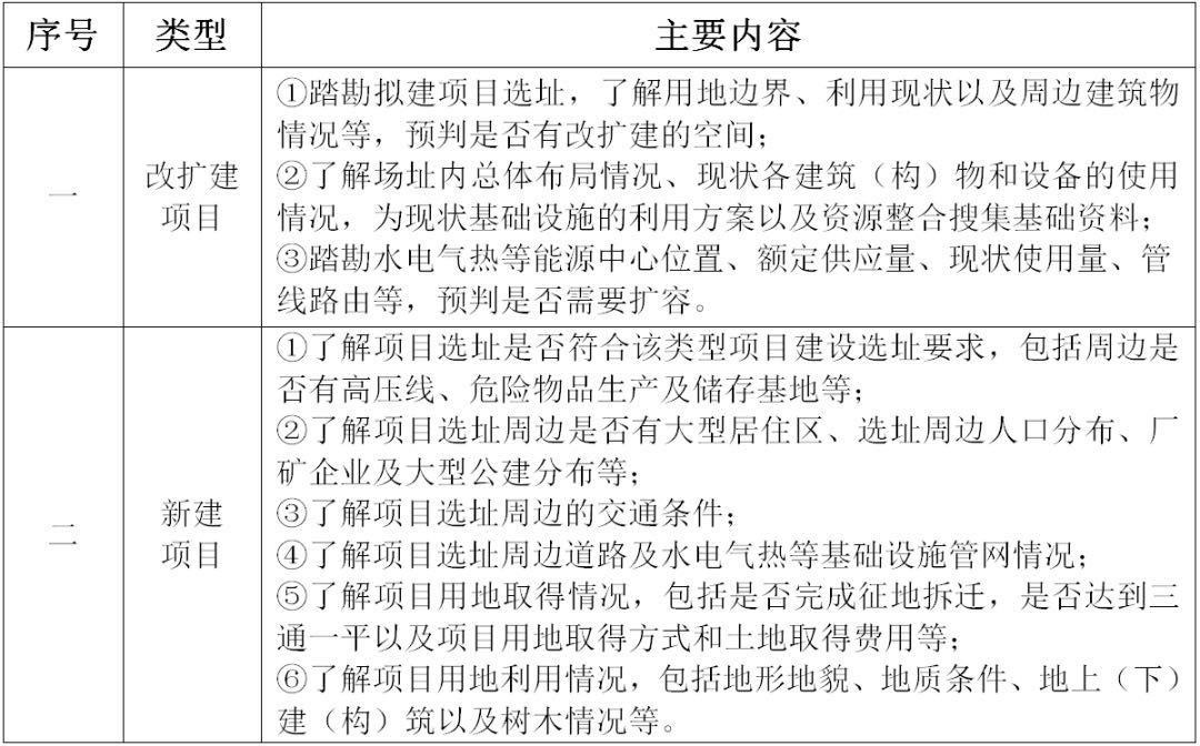 通過對(duì)現(xiàn)場(chǎng)的仔細(xì)踏勘,可以辨識(shí)建設(shè)項(xiàng)目選址與周圍環(huán)境、相關(guān)規(guī)劃的協(xié)調(diào)性;了解周邊交通和市政等建設(shè)條件以及場(chǎng)地施工條件,預(yù)判對(duì)建設(shè)方案和投資的影響;了解地形、地貌和地上(下)物情況,重點(diǎn)關(guān)注土石方工程、擋土護(hù)坡工程、地上(下)物拆改移工程、建設(shè)場(chǎng)地周邊建筑物保護(hù)工程等容易忽視的內(nèi)容,如表2。