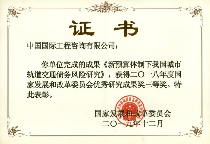 2018年度國(guó)家發(fā)展和改革委員會(huì)優(yōu)秀研究成果獎(jiǎng)三等獎(jiǎng)
