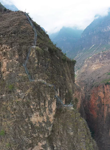 ▲ 5月13日,“懸崖村”群眾沿著鋼梯下山,準(zhǔn)備搬進(jìn)昭覺(jué)縣城易地扶貧搬遷安置點(diǎn)的新家(無(wú)人機(jī)照片)。
