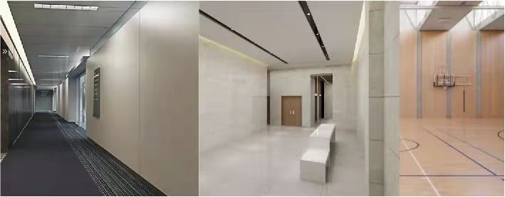 裝配式內(nèi)隔墻,做法可選擇ALC板或輕鋼龍骨墻體系,意向效果如下圖。以內(nèi)隔墻200mm厚為例,ALC板構(gòu)造為75mm厚ALC條板+50mm厚空腔+75mm厚ALC條板。輕鋼龍骨墻體構(gòu)造為膜飾面或涂料+硅酸鈣板基層+墻面龍骨掛裝系統(tǒng)。