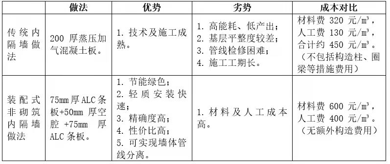 (3)對(duì)比分析(以200mm厚內(nèi)隔墻為例)