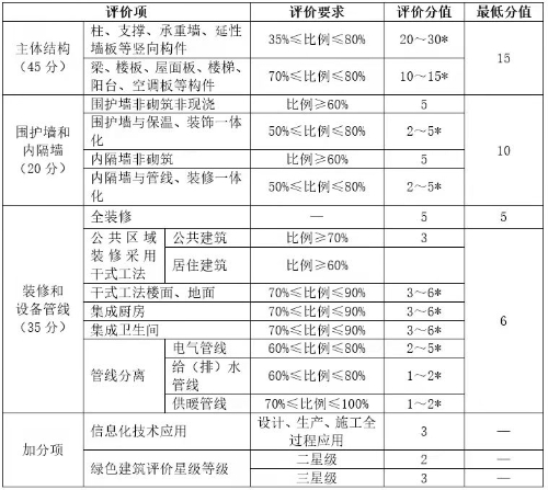 表3 北京地區(qū)裝配式建筑評(píng)價(jià)要求