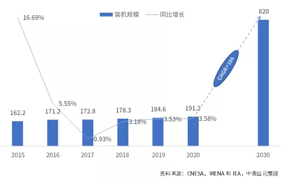 在落實(shí)“雙碳”目標(biāo)的重要背景下,我國能源結(jié)構(gòu)調(diào)整與新型電力系統(tǒng)建設(shè)勢在必行。隨著源網(wǎng)荷儲一體化深度協(xié)調(diào)互動,靈活的能源電力系統(tǒng)新模式將日漸顯現(xiàn)。這一進(jìn)程將催生大量儲能應(yīng)用場景與裝配需求,儲能將扮演不可替代的關(guān)鍵角色。2021年4月國家發(fā)展改革委、國家能源局印發(fā)的《關(guān)于加快推動新型儲能發(fā)展的指導(dǎo)意見(征求意見稿)》(以下簡稱《指導(dǎo)意見》)強(qiáng)調(diào)儲能是支撐新型電力系統(tǒng)的重要技術(shù)和基礎(chǔ)裝備,對推動能源綠色轉(zhuǎn)型、應(yīng)對極端事件、保障能源安全、促進(jìn)能源高質(zhì)量發(fā)展、實(shí)現(xiàn)碳達(dá)峰碳中和具有重要意義。 01國際、國內(nèi)儲能建設(shè)規(guī)模分析及預(yù)測 在碳中和背景下,國際國內(nèi)權(quán)威機(jī)構(gòu)、政府機(jī)關(guān)和中央企業(yè)結(jié)合當(dāng)前實(shí)際與發(fā)展要求,紛紛預(yù)測或提出儲能裝機(jī)規(guī)模的時(shí)間表、路線圖??傮w來看,在各國政府大力引導(dǎo)推動下,國際國內(nèi)儲能市場將高速增長。 (一) 國際儲能建設(shè)規(guī)模 全球儲能裝機(jī)規(guī)模未來十年將高速增長。2018~2020年全球儲能新增裝機(jī)容量分別為5.5GW、6.3GW、6.5GW,三年年均復(fù)合增長率為3.5%。根據(jù)國際可再生能源署(IRENA)展望報(bào)告《電力儲存與可再生能源:2030年的成本與市場》的基本預(yù)測情景中提出,到2030年,抽水蓄能裝機(jī)將達(dá)到約230GW;另據(jù)國際能源署(IEA)《2050凈零排放:全球能源路線圖》報(bào)告中預(yù)測,電池儲能到2030年裝機(jī)規(guī)模將達(dá)到590GW。2030年,在僅考慮抽水蓄能和電池儲能的情況下[1],儲能總裝機(jī)規(guī)模將達(dá)到約820GW,2020~2030年復(fù)合增長率約16%。 圖 1 2015-2020年全球儲能市場累計(jì)裝機(jī)規(guī)模(單位:GW) 電池儲能將成為儲能新增裝機(jī)的重要來源和未來儲能的主要裝機(jī)支撐。截至2020年底,全球儲能已投運(yùn)項(xiàng)目累計(jì)裝機(jī)規(guī)模為191GW,其中抽水蓄能裝機(jī)規(guī)模為172GW,占比90%,電池儲能裝機(jī)15GW,抽水蓄能占據(jù)絕對主導(dǎo)地位。根據(jù)IRENA和IEA預(yù)測的抽水蓄能和電池儲能裝機(jī)情況,到2030年,抽水蓄能裝機(jī)增加至230GW,2020~2030年復(fù)合增長率約3%,電池儲能裝機(jī)增加至590GW,2020~2030年復(fù)合增長率約44%。據(jù)此推算,到2030年,抽水蓄能裝機(jī)與電池儲能裝機(jī)比例約為1:2.5,電池儲能占比超過70%,成為未來儲能重要支撐性裝機(jī)來源。 圖 2 2020-2030年全球抽水蓄能和電池儲能累計(jì)裝機(jī)規(guī)模(單位:GW) (二) 國內(nèi)儲能建設(shè)規(guī)模 2020年我國新增儲能裝機(jī)2.6GW,儲能總裝機(jī)規(guī)模約34GW。根據(jù)CESA數(shù)據(jù),2020年我國新增儲能裝機(jī)2.6GW,其中抽水蓄能新增裝機(jī)容量為1.8GW,占比為69.5%,電池儲能新增裝機(jī)容量為0.79MW,占比30.4%。根據(jù)《中國電力行業(yè)年度發(fā)展報(bào)告2021》與CNESA數(shù)據(jù)推測,截至2020年底,我國儲能總裝機(jī)規(guī)模約34GW,其中抽水蓄能約31GW,電池儲能約3GW。 到2025年,我國儲能裝機(jī)規(guī)模新增60GW以上,有望達(dá)到94GW?!吨笇?dǎo)意見》提出,計(jì)劃到2025年,新型儲能[2]裝機(jī)規(guī)模達(dá)30GW以上。此外,國家電網(wǎng)透露其在運(yùn)、在建抽水蓄能裝機(jī)規(guī)模達(dá)到62GW,“十四五”期間,將力爭新增開工20GW以上;南方電網(wǎng)透露,其到2025年將投產(chǎn)5GW抽水蓄能電站。保守估計(jì),“兩網(wǎng)”在“十四五”期間或?qū)⑿略?0GW以上抽水蓄能裝機(jī)。“十四五”期間,我國新增抽水蓄能和電池儲能裝機(jī)或?qū)⒊^60GW。其中,新增裝機(jī)中一半為電池儲能、一半為抽水蓄能,電池儲能年復(fù)合增長率約為58%,抽水蓄能年復(fù)合增長率為14%,電池儲能增速將遠(yuǎn)高于抽水蓄能。 02 儲能發(fā)展面臨的挑戰(zhàn) 大力發(fā)展儲能已形成良好的政府間共識和技術(shù)基礎(chǔ),但仍面臨重重挑戰(zhàn)。 (一) 建設(shè)成本仍高昂,商業(yè)模式不清晰 電池儲能雖然相較其他儲能而言具備綜合性成本優(yōu)勢,但全生命周期度電成本仍然偏高,位于0.5~1.5元/kwh之間,遠(yuǎn)高于進(jìn)入平價(jià)時(shí)代的風(fēng)光電價(jià)。據(jù)專家預(yù)測,在目前體制機(jī)制下,儲能度電成本需要下降到0.1~0.3元,行業(yè)內(nèi)多數(shù)企業(yè)才能具備足夠的承擔(dān)能力,方可形成在全國大面積鋪開的商業(yè)模式。 (二)政策形勢不明朗,資本觀望氛圍濃 儲能對傳統(tǒng)電力系統(tǒng)而言是新生事物,相關(guān)部委關(guān)于儲能未來科學(xué)合理的監(jiān)管模式尚未達(dá)成共識。導(dǎo)致了行業(yè)發(fā)展在效率考量與安全考慮間徘徊、在政府主導(dǎo)與市場自主間徘徊,傳導(dǎo)至資本市場則體現(xiàn)為投資的忽冷忽熱,不利于形成穩(wěn)定的預(yù)期和增量式資本導(dǎo)入。 (三) 標(biāo)準(zhǔn)體系未建立,安全運(yùn)營存隱患 目前對適應(yīng)我國儲能產(chǎn)業(yè)發(fā)展的安全策略尚未形成頂層共識,電池儲能的安全標(biāo)準(zhǔn)仍未建立,特別是貫穿儲能產(chǎn)品設(shè)計(jì)、研發(fā)、生產(chǎn)、集成等各個(gè)流程的