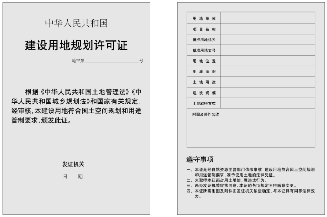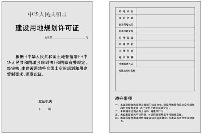 圖1 2019年以后新的建設(shè)用地規(guī)劃許可證(內(nèi)頁(yè))