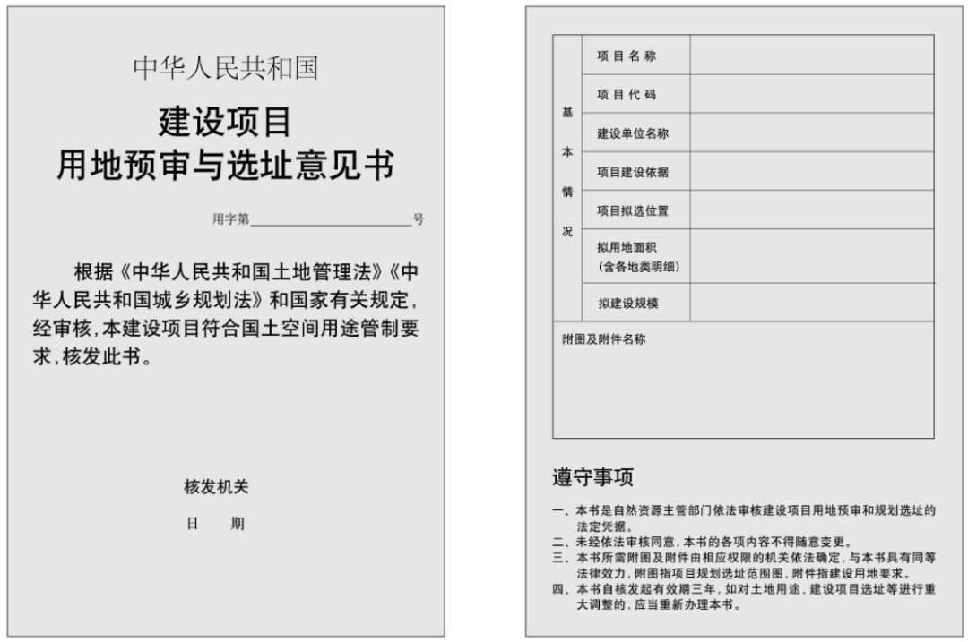 圖2 2019年以后建設(shè)項(xiàng)目用地預(yù)審與選址意見(jiàn)書(shū)(內(nèi)頁(yè))