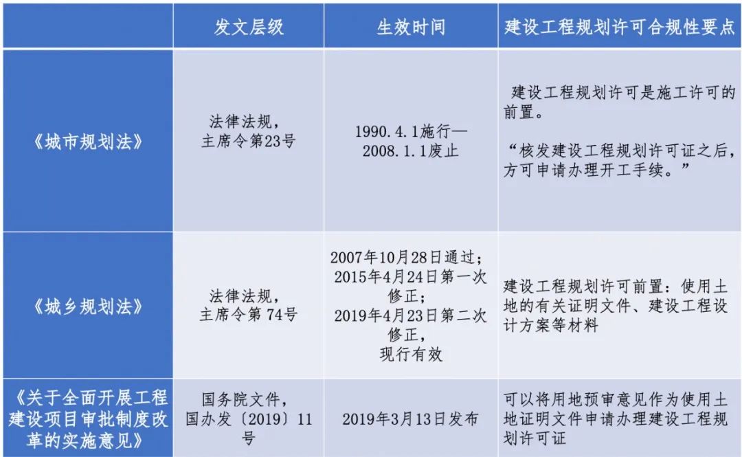 表7 建設(shè)工程規(guī)劃許可手續(xù)沿革及合規(guī)性要點(diǎn)