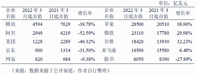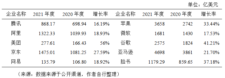 近年來我國數(shù)字經(jīng)濟規(guī)模整體呈現(xiàn)持續(xù)擴大趨勢,2005年我國數(shù)字經(jīng)濟規(guī)模為2.6萬億元,2021年擴張至45.5萬億元,在GDP中占比由14.2%提升至39.8%,市場規(guī)模位居全球第二,已經(jīng)成為名副其實的數(shù)字經(jīng)濟“大國”。然而,當前面臨的數(shù)字經(jīng)濟增速放緩、頭部平臺企業(yè)市值下滑、營收不高、利潤率下滑、新增獨角獸企業(yè)數(shù)量下降等現(xiàn)象暴露出我國數(shù)字經(jīng)濟發(fā)展動能有所減弱,需引起高度重視。 01 數(shù)字經(jīng)濟創(chuàng)新發(fā)展動能減弱的幾個表現(xiàn) (一)數(shù)字經(jīng)濟增速出現(xiàn)放緩。近年來,在全球地緣局勢緊張、疫情反復及強監(jiān)管的影響下,我國數(shù)字經(jīng)濟的增長勢頭出現(xiàn)了放緩。數(shù)據(jù)表明,2014年~2018年間,我國數(shù)字經(jīng)濟的平均增速接近20%,2019年~2021年間,數(shù)字經(jīng)濟的平均增速為13.8%,尤其是2020年,增速僅為9.6%,較上一年下滑5.9個百分點。2021年同比名義增長16.2%,但與2017~2018年間連續(xù)維持20%以上的名義增速,2002年~2018年間實現(xiàn)了208倍的歷史跨越相比,仍存在下滑趨勢。 圖1 2014-2021年我國數(shù)字經(jīng)濟增速 來源:數(shù)據(jù)來源于公開渠道,作者自行整理 (二)頭部數(shù)字平臺企業(yè)市值下滑嚴重。截至2022年3月底,我國平臺企業(yè)中市值排名前5位的依次是騰訊、阿里、美團、京東和網(wǎng)易,其中騰訊市值4594億美元,同比下降39.78%,阿里市值2949億美元,同比下降52.59%,美團市值1228億美元,同比下降46.32%,下滑幅度均超過三分之一。美國平臺企業(yè)中市值排名前5位的依次是蘋果、微軟、谷歌、亞馬遜和臉書,其中蘋果市值28500億美元,同比上漲38.96%,微軟市值23110億美元,同比上漲29.98%,谷歌市值18420億美元,同比上漲32.23%,上漲幅度均超過四分之一。過去的一年間,中美互聯(lián)網(wǎng)平臺企業(yè)的市值差距越來越大。 表1 中美前5大數(shù)字平臺企業(yè)市值對比 (三)頭部數(shù)字平臺企業(yè)營收整體不高。營業(yè)收入方面,2021年度我國平臺企業(yè)營收實現(xiàn)增長。其中京東營業(yè)收入1475.01億美元,同比增長27.59%,阿里營業(yè)收入1322.33億美元,同比增長18.93%,騰訊營業(yè)收入868.17億美元,同比增長16.19%;美國平臺企業(yè)中亞馬遜營業(yè)收入4698億美元,同比增長21.7%,蘋果營業(yè)收入3658億美元,同比增長33.44%,谷歌營業(yè)收入2575億美元,同比增長41.21%。我國京東、阿里的營業(yè)收入均不足亞馬遜的三分之一,且我國前5大平臺企業(yè)差距較大,美團和網(wǎng)易的營業(yè)收入僅為277.61億美元和135.79億美元,我國前5大平臺企業(yè)的平均營業(yè)收入不足美國前5大平臺企業(yè)的30%。 表2 中美前5大數(shù)字平臺企業(yè)營業(yè)收入對比 (四)頭部數(shù)字平臺企業(yè)利潤出現(xiàn)持續(xù)下滑。利潤方面,2021年度我國平臺企業(yè)利潤下滑嚴重,其中美團和京東出現(xiàn)了凈虧損。具體來看,美團虧損36.48億美元,同比下降599.96%,京東虧損5.52億美元,同比下降107.21%,阿里凈利潤為96.04億美元,同比下降58.78%;美國平臺企業(yè)中蘋果凈利潤946.8億美元,同比增長64.92%,谷歌凈利潤760.33億美元,同比增長88.81%,微軟凈利潤612.71億美元,同比增長38.37%,亞馬遜和臉書的凈利潤均超過300億美元。我國前5大平臺企業(yè)的平均凈利潤不足美國前5大平臺企業(yè)的15%。 表3 中美前5大數(shù)字平臺企業(yè)利潤對比 (五)頭部數(shù)字平臺企業(yè)營收結(jié)構側(cè)重消費者業(yè)務。收入結(jié)構方面,我國前5大平臺企業(yè)更依賴電商、游戲、外賣等面向消費者的業(yè)務,企業(yè)營收仍集中在國內(nèi)市場,美國前5大平臺企業(yè)更依賴智能云服務、硬件服務和電商,面向更廣闊的全球市場。 表4 中美前5大平臺企業(yè)收入結(jié)構對比 (六)獨角獸企業(yè)數(shù)量增長明顯減速。無論是獨角獸企業(yè)的新增數(shù)量還是準獨角獸企業(yè)的形成數(shù)量,我國都滯后于美國甚至印度。2018年以來的中美貿(mào)易摩擦以及2021年初以來的平臺經(jīng)濟“強監(jiān)管”政策都加速了新增獨角獸公司的數(shù)量的全球分化。根據(jù)最新榜單,中國的新興獨角獸公司有27家,落后于印度的32家,2021年中國新增獨角獸企業(yè)僅3家,明顯落后于美國的132家。在全球數(shù)字經(jīng)濟的競爭格局中“不進則退”。 圖2 2010~2021年中美新增獨角獸企業(yè)對比 來源:數(shù)據(jù)來源于公開渠道,作者自行整理 02 正確認識和把握數(shù)字經(jīng)濟的幾個關系 (一)在持續(xù)發(fā)展中實現(xiàn)安全。面對安全和發(fā)展,要把發(fā)展擺在首位,是第一要務,通過發(fā)展來解決安全問題。從國際競爭的角度來說,數(shù)字經(jīng)濟發(fā)展放緩就意味著國家的安全隱患增加。涉及個人隱私和國家信息安全的問題,可以利用技術發(fā)展來尋求解決的辦法,比如區(qū)塊鏈就在智能合約中發(fā)揮著重要作用,區(qū)塊鏈技術把可能出現(xiàn)的造假都從技術上堵住了,又如保護個人隱私問題,有了隱私計算技術就可以實現(xiàn)對數(shù)據(jù)“可用而不可見”,既保護個人隱私又讓數(shù)據(jù)得以流通和使用。故而,當經(jīng)濟和技術發(fā)展起來后,可以利用技術來解決安全問題。此外,在考慮數(shù)據(jù)安