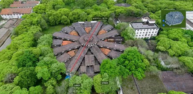 意大利人設(shè)計并建造的飛機生產(chǎn)裝配中心——八角樓,建筑面積8186平方米,占地面積8.64畝。