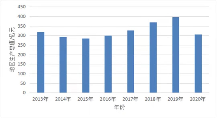 圖4 格爾木市2013-2020年地區(qū)生產(chǎn)總值情況