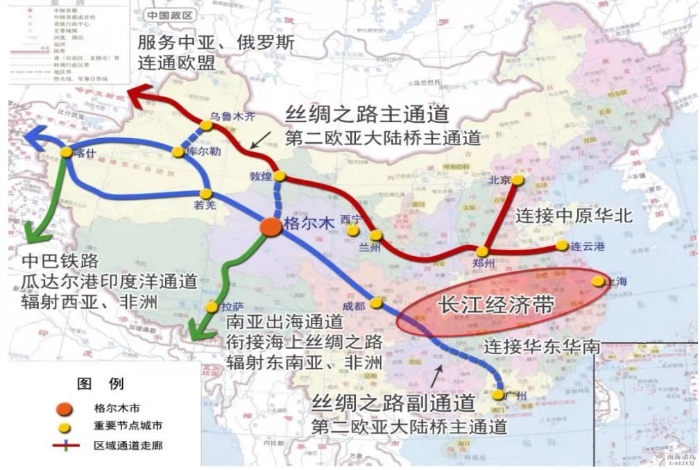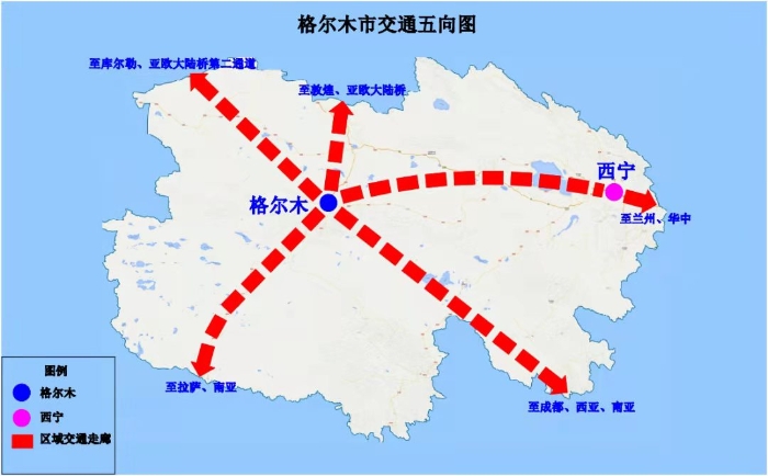 格爾木地處青藏高原腹地,位于祖國(guó)西部的地理中心,是國(guó)家穩(wěn)藏固疆的戰(zhàn)略要沖、加強(qiáng)西南邊防建設(shè)的保障基地。2015年,青海省委、省政府出臺(tái)了深度融入“一帶一路”建設(shè)構(gòu)建對(duì)外開放新格局的實(shí)施意見,格爾木被確定為青海省對(duì)外開放節(jié)點(diǎn)城市之一。2017年1月,國(guó)家發(fā)展和改革委員會(huì)發(fā)布了《西部大開發(fā)“十三五”規(guī)劃》,構(gòu)畫出西部開發(fā)“五橫兩縱一環(huán)”總體空間格局,格爾木市被確定為京藏通道西段節(jié)點(diǎn)城市,支撐青海藏區(qū)發(fā)展的新增長(zhǎng)極。2017年2月,國(guó)務(wù)院發(fā)布了《“十三五”現(xiàn)代綜合交通運(yùn)輸體系發(fā)展規(guī)劃》,格爾木被列為全國(guó)性綜合交通樞紐。2018年,國(guó)家發(fā)展改革委、交通運(yùn)輸部發(fā)布了《國(guó)家物流樞紐布局和建設(shè)規(guī)劃》,格爾木被規(guī)劃為陸港型國(guó)家物流樞紐承載城市。