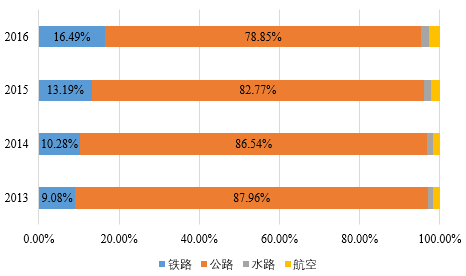 雙碳目標(biāo)下的運輸結(jié)構(gòu)調(diào)整瓶頸與對策研究 程婕 蘇志欣 碳達(dá)峰、碳中和目標(biāo),是黨中央作出的重大戰(zhàn)略決策。交通運輸是能源消費端的重點領(lǐng)域,也是碳排放主要來源之一。我國已經(jīng)連續(xù)多年客貨運量居于世界第一,同時結(jié)構(gòu)不優(yōu)的短板也日趨嚴(yán)峻。運輸結(jié)構(gòu)調(diào)整對于交通運輸業(yè)早日實現(xiàn)“雙碳”目標(biāo)意義重大。本文通過對我國運輸結(jié)構(gòu)調(diào)整的政策實施情況進(jìn)行總結(jié),對標(biāo)國際提出我國運輸結(jié)構(gòu)依然存在的差距,分析其面臨的瓶頸及原因,并提出雙碳目標(biāo)下運輸結(jié)構(gòu)調(diào)整的對策建議,為運輸結(jié)構(gòu)調(diào)整助力我國交通運輸業(yè)走出一條“世界前列”的“雙碳”新路徑提供參考。 一、運輸結(jié)構(gòu)調(diào)整對于雙碳目標(biāo)實現(xiàn)的意義和作用 (一)我國交通運輸實現(xiàn)雙碳目標(biāo)面臨較大壓力 交通運輸業(yè)是繼工業(yè)之后,我國能源需求以及二氧化碳和污染物排放迅速增長的領(lǐng)域。目前,我國交通運輸能源需求約占一次能源能耗比重為10%左右,占全社會終端能耗比重為14%左右,與發(fā)達(dá)國家交通運輸占能源需求1/3的普遍情況相比有很大差距。同時從發(fā)展規(guī)律來看,交通運輸業(yè)碳排放與現(xiàn)代化進(jìn)程高度正相關(guān),交通運輸業(yè)未來仍將面臨碳排放快速增長的較大壓力。結(jié)合世界其他國家碳達(dá)峰路徑軌跡,業(yè)界學(xué)者專家認(rèn)為,在現(xiàn)有技術(shù)路徑延續(xù)的情況下,我國交通運輸業(yè)碳達(dá)峰時間將晚于全社會碳達(dá)峰時間,亟需從根源和結(jié)構(gòu)上尋求突破。 (二)不同交通方式間環(huán)保效能差異大 2019年,我國交通運輸領(lǐng)域碳排放分方式看,公路占74%、水運占8%、鐵路占8%、航空占10%。其中,公路貨運的碳排放量和顆粒排放量的占比分別約58%和61%。根據(jù)相關(guān)測算,“公轉(zhuǎn)鐵”每轉(zhuǎn)移1億噸公里,全生命周期能減排7500噸二氧化碳、80噸氮氧化物、4噸顆粒物。根據(jù)日本客運數(shù)據(jù)測算,公交汽車、航空、私家車單位周轉(zhuǎn)量的碳排放量分別為軌道交通的2.7倍、6倍和9倍。根據(jù)2019年數(shù)據(jù)測算得到,航空、公路、鐵路、水運單位換算周轉(zhuǎn)量碳排放約為850.6、134.5、19.6、8.5克/噸公里,航空最高,其次為公路。 (三)運輸結(jié)構(gòu)調(diào)整是“雙碳”政策的重要抓手 《國務(wù)院關(guān)于印發(fā)2030年前碳達(dá)峰行動方案的通知》(國發(fā)〔2021〕23號)提出:推動不同運輸方式合理分工;大力發(fā)展以鐵路、水路為骨干的多式聯(lián)運;加快大宗貨物和中長距離貨物運輸“公轉(zhuǎn)鐵”“公轉(zhuǎn)水”?!吨泄仓醒雵鴦?wù)院關(guān)于完整準(zhǔn)確全面貫徹新發(fā)展理念做好碳達(dá)峰碳中和工作的意見》(2021年9月22日)提出:優(yōu)化交通運輸結(jié)構(gòu);加快建設(shè)綜合立體交通網(wǎng),大力發(fā)展多式聯(lián)運,提高鐵路、水路在綜合運輸中的承運比重;優(yōu)化客運組織,引導(dǎo)客運企業(yè)規(guī)模化、集約化經(jīng)營?!吨泄仓醒?國務(wù)院關(guān)于深入打好污染防治攻堅戰(zhàn)的意見》(2021年11月2日)提出:加快大宗貨物和中長途貨物運輸“公轉(zhuǎn)鐵”“公轉(zhuǎn)水”,大力發(fā)展公鐵、鐵水等多式聯(lián)運?!笆奈濉睍r期,鐵路貨運量占比提高0.5個百分點,水路貨運量年均增速超過2%。推動運輸結(jié)構(gòu)向綠色低碳方向調(diào)整成為大氣污染防治的關(guān)鍵舉措。 交通運輸結(jié)構(gòu)調(diào)整對于我國交通運輸業(yè)防微杜漸,走出一條有別于發(fā)達(dá)國家的碳達(dá)峰新路徑,以后發(fā)優(yōu)勢支撐我國全社會“雙碳”目標(biāo)的實現(xiàn)以及助力實現(xiàn)交通強國“世界前列”的發(fā)展目標(biāo)具有重要意義。 二、我國交通運輸結(jié)構(gòu)調(diào)整實施情況 (一)貨物運輸從公路運輸轉(zhuǎn)向鐵路、水運的結(jié)構(gòu)調(diào)整取得一定成果 2018年3月國務(wù)院印發(fā)《打贏藍(lán)天保衛(wèi)戰(zhàn)三年行動計劃》和10月國務(wù)院辦公廳發(fā)布《推進(jìn)運輸結(jié)構(gòu)調(diào)整三年行動計劃(2018-2020年)的通知》。國內(nèi)貨物運輸逐漸向鐵路、水運方向調(diào)整,宏觀調(diào)控政策取得一定成效。 從貨運量占比來看,2016-2020年,公路貨運規(guī)模占比從76.36%下降至73.93%,鐵路貨運規(guī)模占比從7.56%上升至9.62%,水路貨運規(guī)模占比從14.44%上升至16.44%。 數(shù)據(jù)來源:中國統(tǒng)計年鑒2017-2021、中國統(tǒng)計公報2021。 圖1 近六年貨物運輸量占比變化情況 從貨運量增速來看,2017年中國鐵路貨運增速超過其他運輸方式,達(dá)到10.7%。2020年在貨運總量同比下降0.5%的背景下,鐵路運輸逆勢而上,同比增長3.2%。水路運輸也整體呈現(xiàn)增長態(tài)勢(剔除2020年新冠疫情的影響)。 大宗物資運輸結(jié)構(gòu)調(diào)整取得階段性成果。截止2020年,全國大宗貨物累計完成鐵路增量約7.8億噸,水運增量5.7億噸,沿海港口大宗貨物公路運輸量減少約3.7億噸。 (二)旅客運輸規(guī)模較快增長,運輸結(jié)構(gòu)不斷優(yōu)化 2019年(剔除2020、2021年新冠疫情的影響),全社會完成客運量