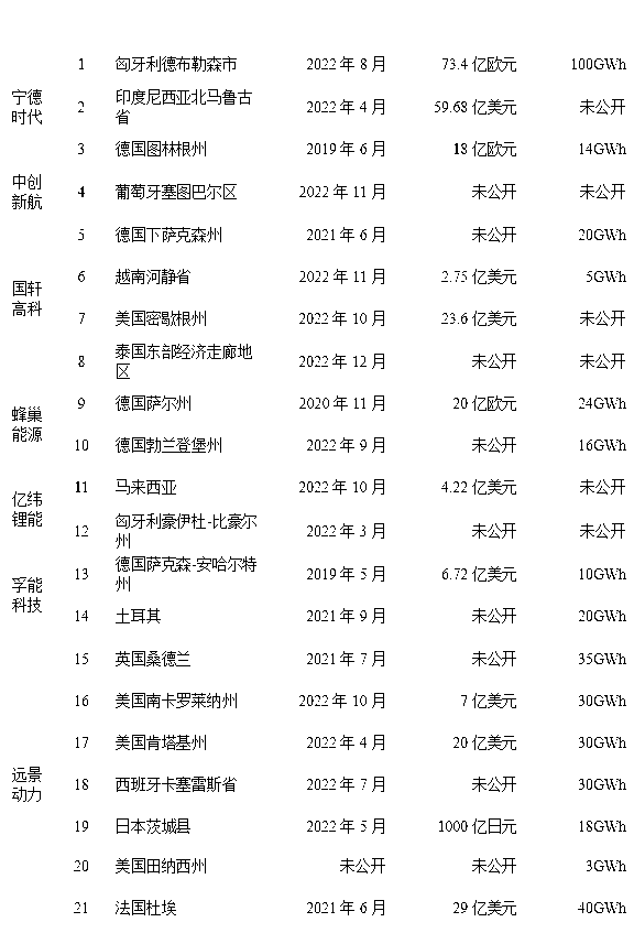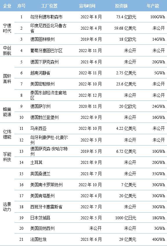 表5 我國主要?jiǎng)恿﹄姵仄髽I(yè)海外布局情況表