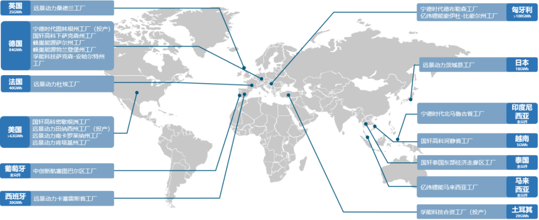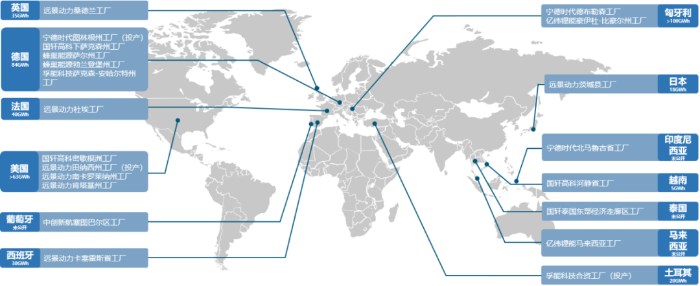 圖1 我國動(dòng)力電池企業(yè)海外布局圖