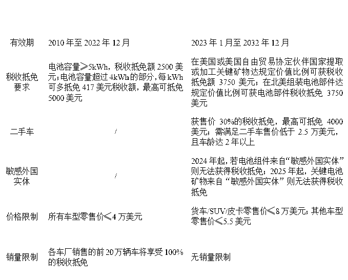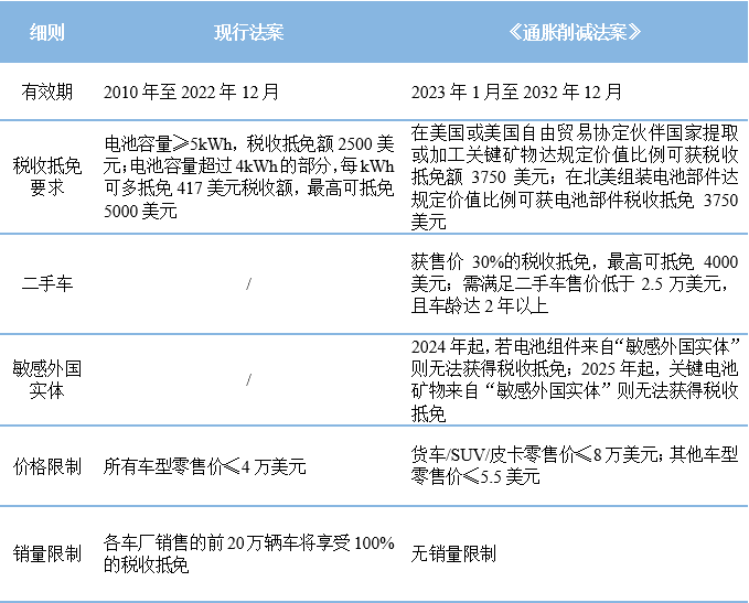 表2 美國新能源汽車現(xiàn)行方案與《通脹削減法案》對(duì)比