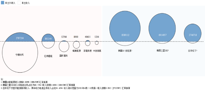 圖2 2021年主要?jiǎng)恿﹄姵仄髽I(yè)本土外收入情況