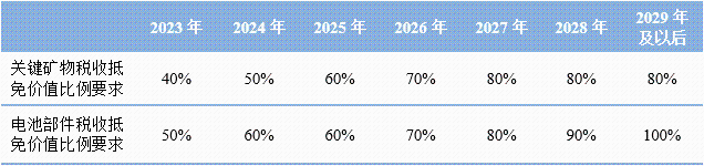 表3 美國《通脹削減法案》各年份獲稅收抵免對(duì)來源和組裝要求比例