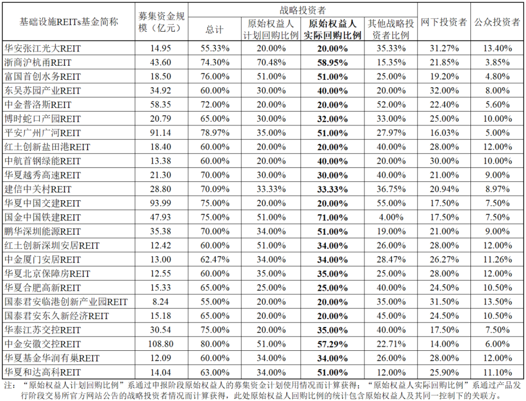 基礎(chǔ)設(shè)施REITs原始權(quán)益人“回購(gòu)”份額比例研究