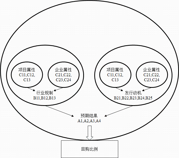 基于本文分析,可以進(jìn)一步推演出原始權(quán)益人進(jìn)行回購(gòu)比例決策時(shí)的影響路徑:項(xiàng)目與企業(yè)屬性特征方面的內(nèi)在因素(C1、C2),產(chǎn)生了行業(yè)規(guī)制(B1)和發(fā)行動(dòng)機(jī)(B2)方面的約束性因素,決定了預(yù)期結(jié)果(A)的評(píng)價(jià)標(biāo)準(zhǔn),從而通過(guò)對(duì)預(yù)期結(jié)果這一直接因素的判斷,進(jìn)行了回購(gòu)比例的最終決策,即“內(nèi)在因素-約束因素-預(yù)期因素-最終決策”的路徑。