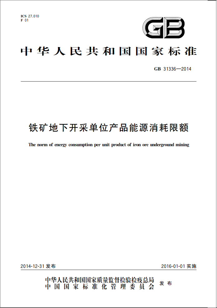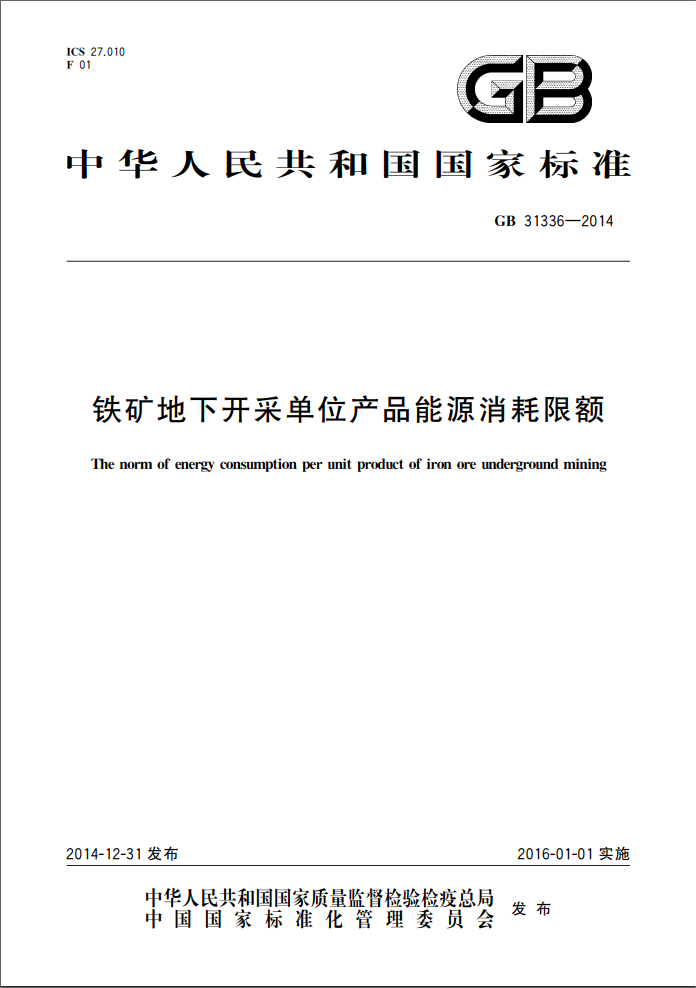 本標(biāo)準(zhǔn)規(guī)定了鐵礦地下開采單位產(chǎn)品能源消耗(以下簡稱能耗)限額的技術(shù)要求、統(tǒng)計(jì)范圍和計(jì)算方法、節(jié)能管理與措施。
