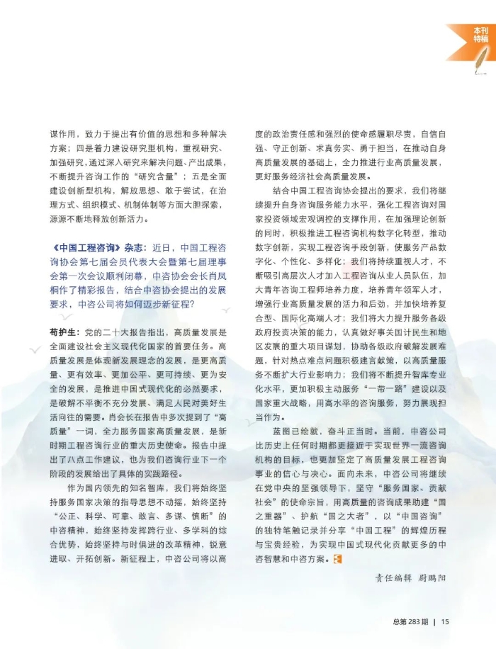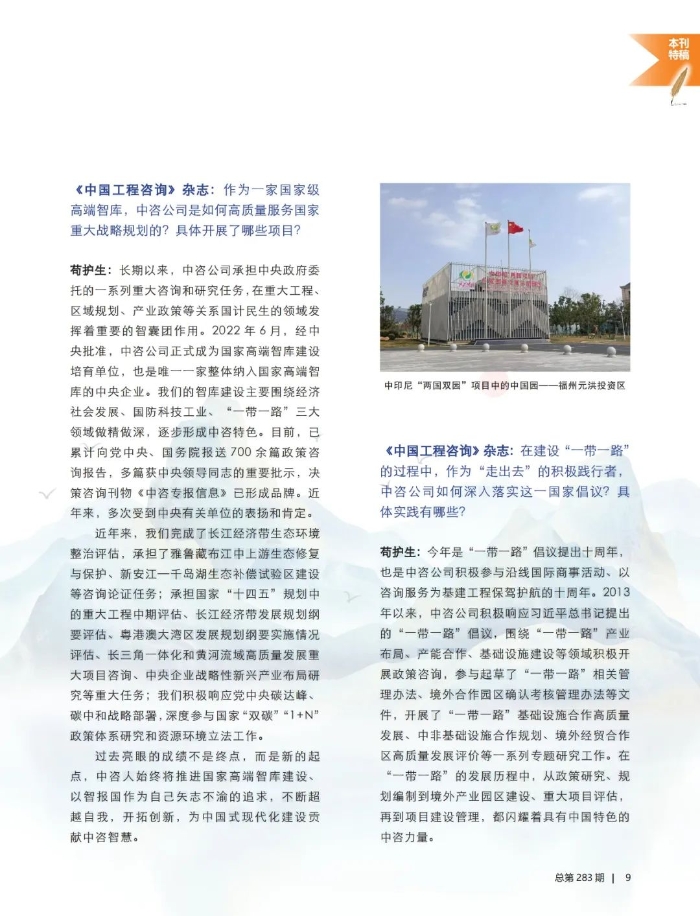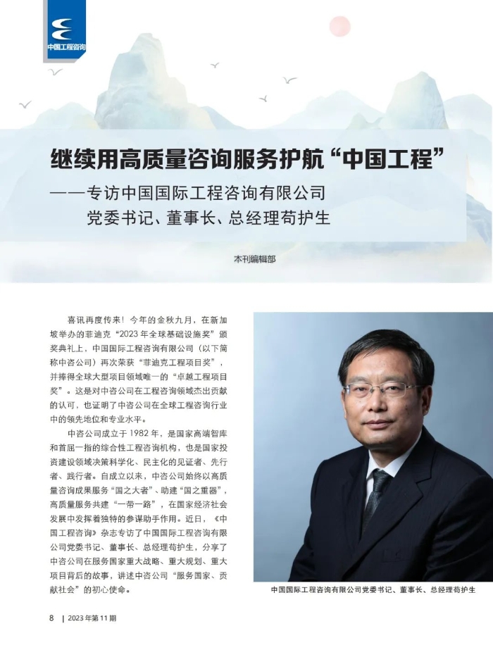 繼續(xù)用高質(zhì)量咨詢服務護航“中國工程”——專訪中國國際工程咨詢有限公司黨委書記、董事長、總經(jīng)理茍護生
