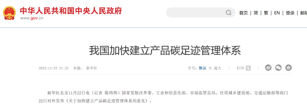 近日,國家發(fā)展改革委、工業(yè)和信息化部、市場監(jiān)督管理總局、住房和城鄉(xiāng)建設部、交通運輸部等部門聯(lián)合印發(fā)了《關于加快建立產品碳足跡管理體系的意見》(發(fā)改環(huán)資〔2023〕1529號,以下簡稱《意見》),明確了加快提升我國重點產品碳足跡管理水平的總體要求、重點任務、保障措施和組織實施要求等,搭建起產品碳足跡管理體系總體框架,支持企業(yè)按照市場原則自愿開展產品碳足跡認證,響應了近年來市場對于建立產品碳足跡管理體系的迫切需求,填補了相關領域制度空白,是指導國內產品碳足跡管理體系建設的綜合性文件,意義十分重大。