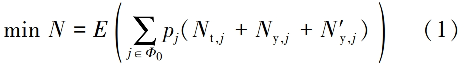 式中:為隨機(jī)場景期望結(jié)果;為新能源出力隨機(jī)場景集合;為場景的概率;為綜合成本,包含投資費(fèi)用等年值、年固定運(yùn)行費(fèi)用、年可變運(yùn)行費(fèi)用。