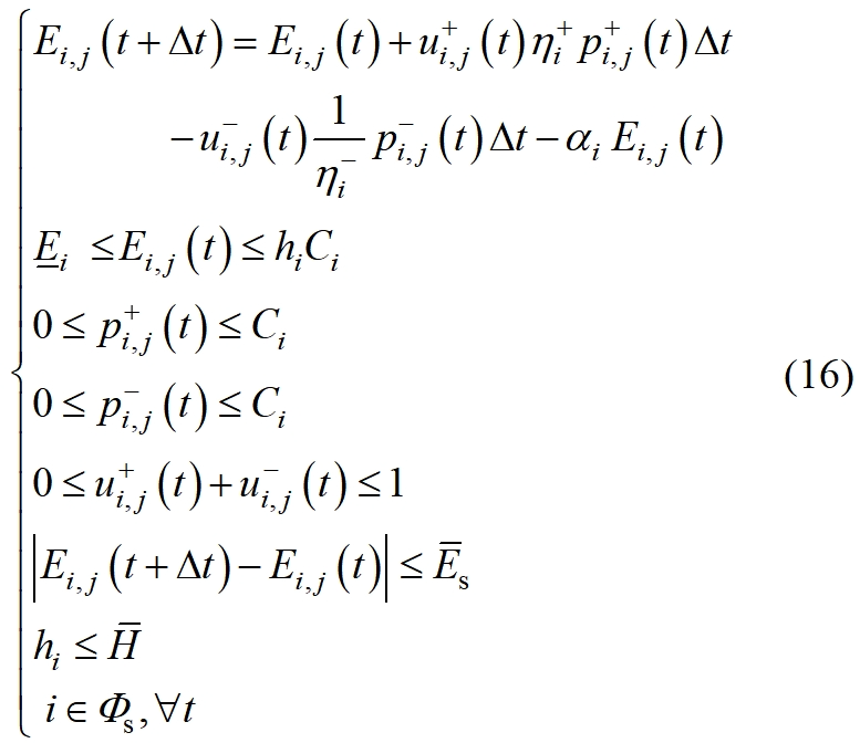 式中:image047.png為電量;image048.png分別為充、放電功率;image049.png分別為充、放電效率;image050.png為自放電率;image051.png別為充、放電狀態(tài);image052.png為電量下限;image053.png為荷電狀態(tài)限值;h為儲能時長;image054.png為最大時長。