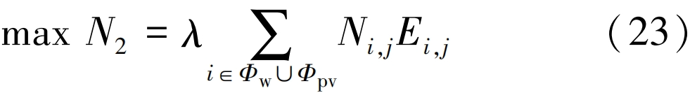 上層問題為新能源消納最大模型,由式(21)松弛后的上層問題目標(biāo)函數(shù)形式如下: