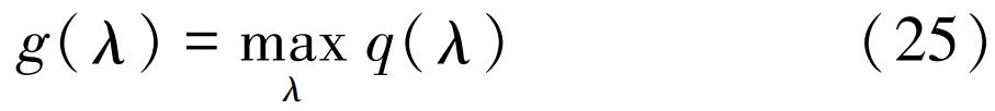 對偶函數(shù)式(24)須滿足原問題所有約束條件。依據(jù)拉格朗日對偶松弛理論,得到對偶問題如下: