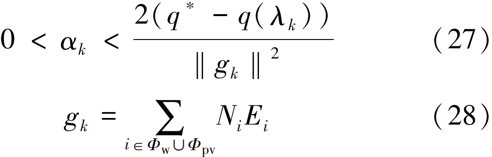 6.選取合適迭代方法和步長對拉格朗日乘子進(jìn)行迭代。