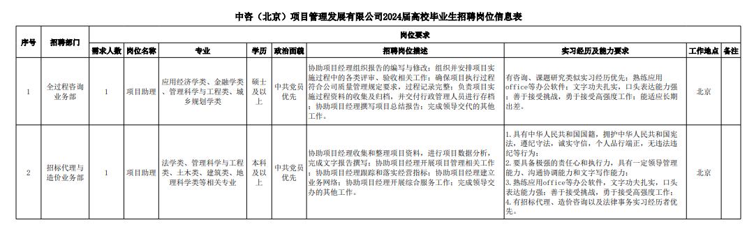 中咨(北京)項目管理發(fā)展有限公司招聘崗位信息