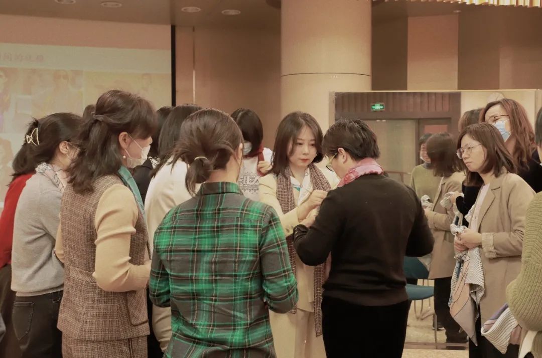 活動邀請經(jīng)驗豐富的許運芝老師,為大家科普色彩搭配等小知識,手把手傳授常見絲巾系法。