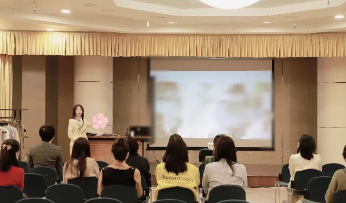 許老師開課之初就提到,頸部線條直接關(guān)乎女性的氣質(zhì)展現(xiàn),絲巾不僅是日常著裝的搭配之選,更是實用百搭且經(jīng)久不衰的單品,一條簡單的絲巾就可以讓女性散發(fā)出雅致魅力。許老師講解了不同場合、不同顏色的服飾如何搭配絲巾,以及四種常見絲巾系法,半貝殼結(jié)、全貝殼結(jié)、田字結(jié)、花瓣結(jié)等系法一一呈現(xiàn)在大家眼前。女職工們邊看邊學(xué),不時交流心得體會。