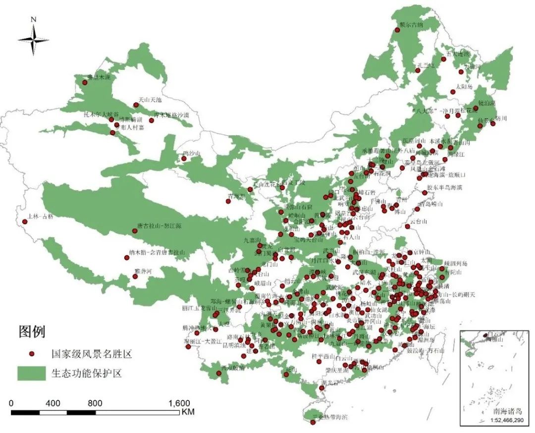 圖1 中國關鍵生態(tài)功能保護區(qū)中國家級風景名勝區(qū)之分布(制圖:孫艷芝)