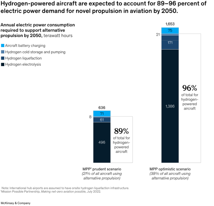 圖1 到2050年,氫動力飛機預計占航空產業(yè)新型推進器電力需求的89%-96%