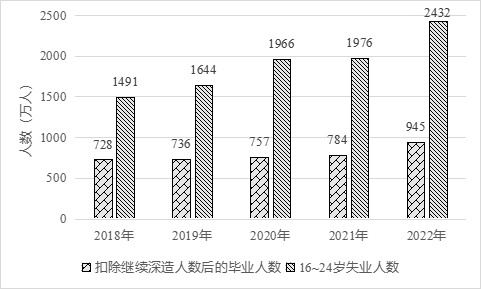 習近平總書記多次強調(diào),就業(yè)是最大的民生,青年就業(yè)工作要擺在更加突出位置。青年是國家的未來與希望,就業(yè)是青年群體最普遍、最迫切的需求之一。當前,我國16~24歲青年失業(yè)率連創(chuàng)新高,不利于經(jīng)濟社會穩(wěn)定發(fā)展。中咨公司課題組研究指出,當前青年失業(yè)率主要由經(jīng)濟增速和通脹水平回落以及供需錯配等因素造成,要充分認識到發(fā)展是解決青年失業(yè)問題的根本動力,做好職業(yè)教育和高等教育“兩頭抓”、不斷豐富就業(yè)信息來源和拓寬就業(yè)渠道、多途徑為失業(yè)青年提供保障,促進青年更好成長、更快發(fā)展。 一、青年失業(yè)率處于近年來高位 (一)當前青年失業(yè)率約為疫情前的兩倍,成為拖累整體失業(yè)率的主因。統(tǒng)計局數(shù)據(jù)顯示,疫情前我國青年失業(yè)率均值穩(wěn)定在10%左右,目前已經(jīng)超過20%。2020年青年失業(yè)率受疫情沖擊,月度峰值升至16.8%,2021年的月度峰值略微回落至16.2%,2022年全年的均值高達17.5%,為社會整體失業(yè)率的3.15倍,其中月度峰值達19.9%,創(chuàng)有記錄以來新高。今年4月,青年失業(yè)率首次突破20%,5月升至20.8%,6月份繼續(xù)攀升至21.3%,環(huán)比上升0.5個百分點,已經(jīng)連續(xù)3個月創(chuàng)記錄新高,超過當月社會整體失業(yè)率的4倍。 圖1 全國16~24歲人口城鎮(zhèn)調(diào)查失業(yè)率變動趨勢圖 (二)失業(yè)率高于全球平均水平及主要經(jīng)濟體。2022年全球青年失業(yè)率平均為14.9%,其中歐洲和中亞地區(qū)為16.4%,亞太地區(qū)為14.9%,北美地區(qū)為8.3%,美國的青年失業(yè)率在2020年4月達到27.4%的峰值,但2022年已經(jīng)穩(wěn)定控制在8.5%以下,全球主要地區(qū)的青年就業(yè)形勢好于我國。 (三)低學歷人群是失業(yè)青年的主力,面臨更大的失業(yè)風險。相較于高校畢業(yè)生,高中及以下的低學歷青年人數(shù)更多,成為影響當前青年失業(yè)率的重要因素。根據(jù)第七次人口普查數(shù)據(jù),當前我國16~24歲的人口數(shù)量剔除在校生后,高中及以下低學歷就業(yè)人數(shù)占比近70%。按照青年人口數(shù)和調(diào)查失業(yè)率推算,青年失業(yè)人口可能超過2400萬人,2022年高校畢業(yè)生剔除繼續(xù)升學人數(shù)后的求職人數(shù)約為950萬人,表明當前失業(yè)青年中低學歷人群的影響不容忽視。此外,2022年青年農(nóng)民工的數(shù)量為2800萬人,該人群的工作崗位不穩(wěn)定更易受經(jīng)濟波動影響,值得引起更多關(guān)注。 圖2 全國青年失業(yè)人數(shù)與高校畢業(yè)生人數(shù)對比圖 二、原因分析 (一)經(jīng)濟增速和通脹水平回落推高失業(yè)率。一方面,疫情以來經(jīng)濟增速回落推高失業(yè)率。奧肯定律揭示出宏觀經(jīng)濟增速和失業(yè)率呈反向關(guān)系,我國目前的經(jīng)濟增速仍未恢復至疫情前的水平,2023年2季度實際GDP環(huán)比增速出現(xiàn)回落,低于預期。同時,我國經(jīng)濟面臨增速換擋,自然會出現(xiàn)失業(yè)率的走高,直接表現(xiàn)為作為初入就業(yè)市場的青年群體就業(yè)難現(xiàn)象。另一方面,通脹水平持續(xù)下滑短期內(nèi)抑制就業(yè)。近期國內(nèi)的通脹水平持續(xù)走低,數(shù)據(jù)顯示,自2023年3月開始,我國CPI已經(jīng)連續(xù)4個月低于1%,6月份,CPI已經(jīng)降至0%,PPI同比下降5.4%,PPI同比降幅連續(xù)6個月不斷擴大。根據(jù)菲力普斯曲線,短期內(nèi)失業(yè)率與通貨膨脹率之間存在明顯的交替關(guān)系,因此,國內(nèi)的低通脹進一步推高了失業(yè)率。 圖3 短期內(nèi)失業(yè)率與通貨膨脹率之間的關(guān)系 (二)供需錯配進一步加劇失業(yè)風險。一是部分行業(yè)用人需求出現(xiàn)萎縮。根據(jù)普查數(shù)據(jù),有近50%的青年人就業(yè)主要集中在制造業(yè)、批發(fā)零售、住宿餐飲等行業(yè),但是近年來受疫情沖擊,居民消費需求恢復緩慢,住宿餐飲等服務(wù)行業(yè)收縮明顯,同時勞動密集型制造業(yè)與低端制造外遷,致使其吸納就業(yè)能力下降,對青年群體尤其是低學歷青年就業(yè)形成拖累。二是畢業(yè)生供給持續(xù)創(chuàng)新高。每年高校畢業(yè)生人數(shù)都在持續(xù)遞增,2023年高校畢業(yè)生已經(jīng)達到1158萬人,比本世紀初高出十倍之多,剔除考公、考研、出國的人數(shù),預估仍將有950萬應屆生進入職場,激烈程度每年只增不減。再加上近年外國留學人員回國求職人數(shù)上升,進一步增加了青年求職群體的就業(yè)壓力。三是結(jié)構(gòu)性矛盾突出。一方面,青年學生就業(yè)觀不實際。很多畢業(yè)生對就業(yè)環(huán)境、行業(yè)、城市的期望與實際勞動力市場提供的條件存有落差,青年不再愿意入職傳統(tǒng)的制造業(yè)工廠,甚至出現(xiàn)“3000元工廠招不到藍領(lǐng)工人,寫字樓卻可以招到大學生”的說法。并且近年來越來越多畢業(yè)生競爭有限的公職崗位,耽誤了最佳的就業(yè)時機。另一方面,知識和能力跟不上需求。在信息密集型服務(wù)業(yè)、知識密集型服務(wù)業(yè)等領(lǐng)域,眾多低學歷青年的知識儲備和能力無法滿足企業(yè)要求。此外,當前高校的教育與社會需求脫節(jié),導致人才培養(yǎng)滯后于產(chǎn)業(yè)結(jié)構(gòu)調(diào)整和市場需求變化。 三、失業(yè)率居高不
