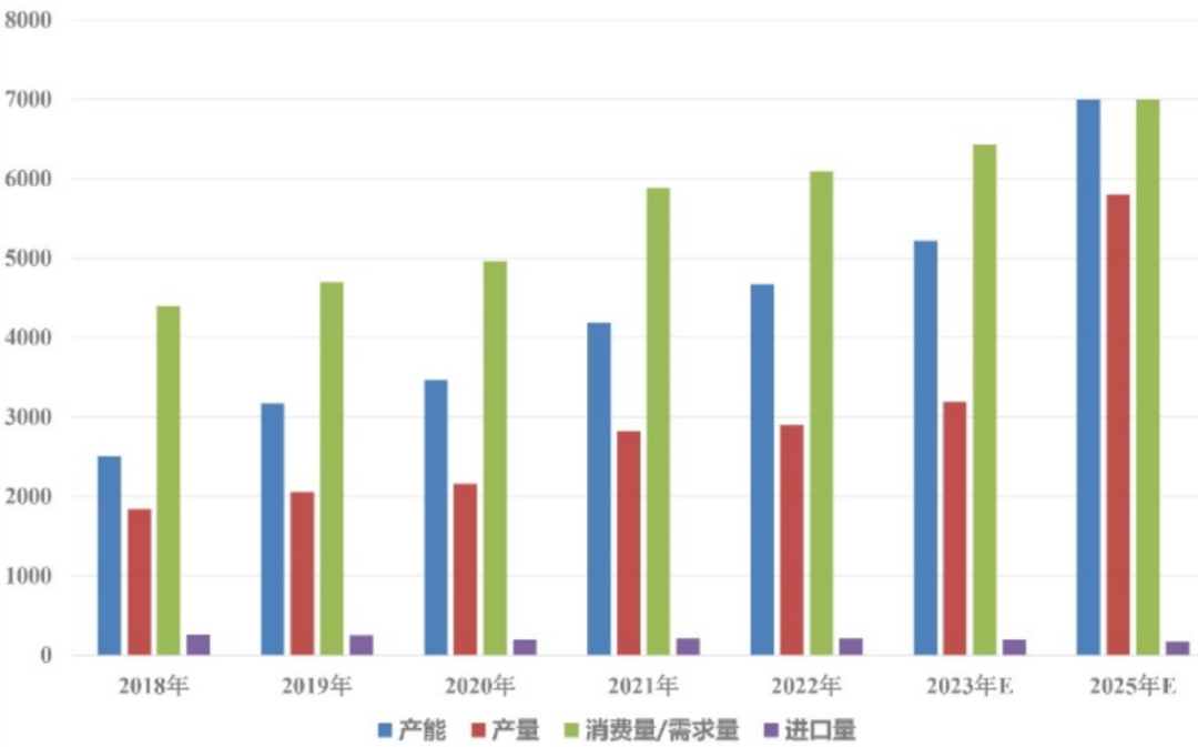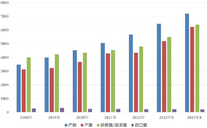 截至2022年底,我國乙烯產(chǎn)能達(dá)到4675萬噸/年,產(chǎn)量4168萬噸,進(jìn)口量206萬噸,當(dāng)量消費(fèi)量6250萬噸,當(dāng)量自給率提升至66.7%,已成為全球最大的乙烯產(chǎn)能和消費(fèi)國。