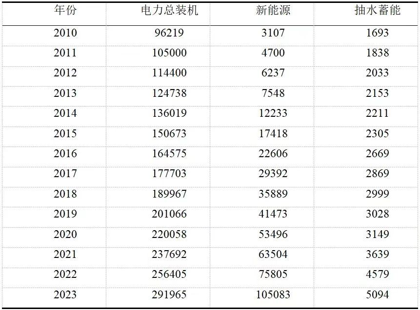 表1 我國(guó)電力、新能源和抽水蓄能裝機(jī)規(guī)模(單位:萬(wàn)kW)