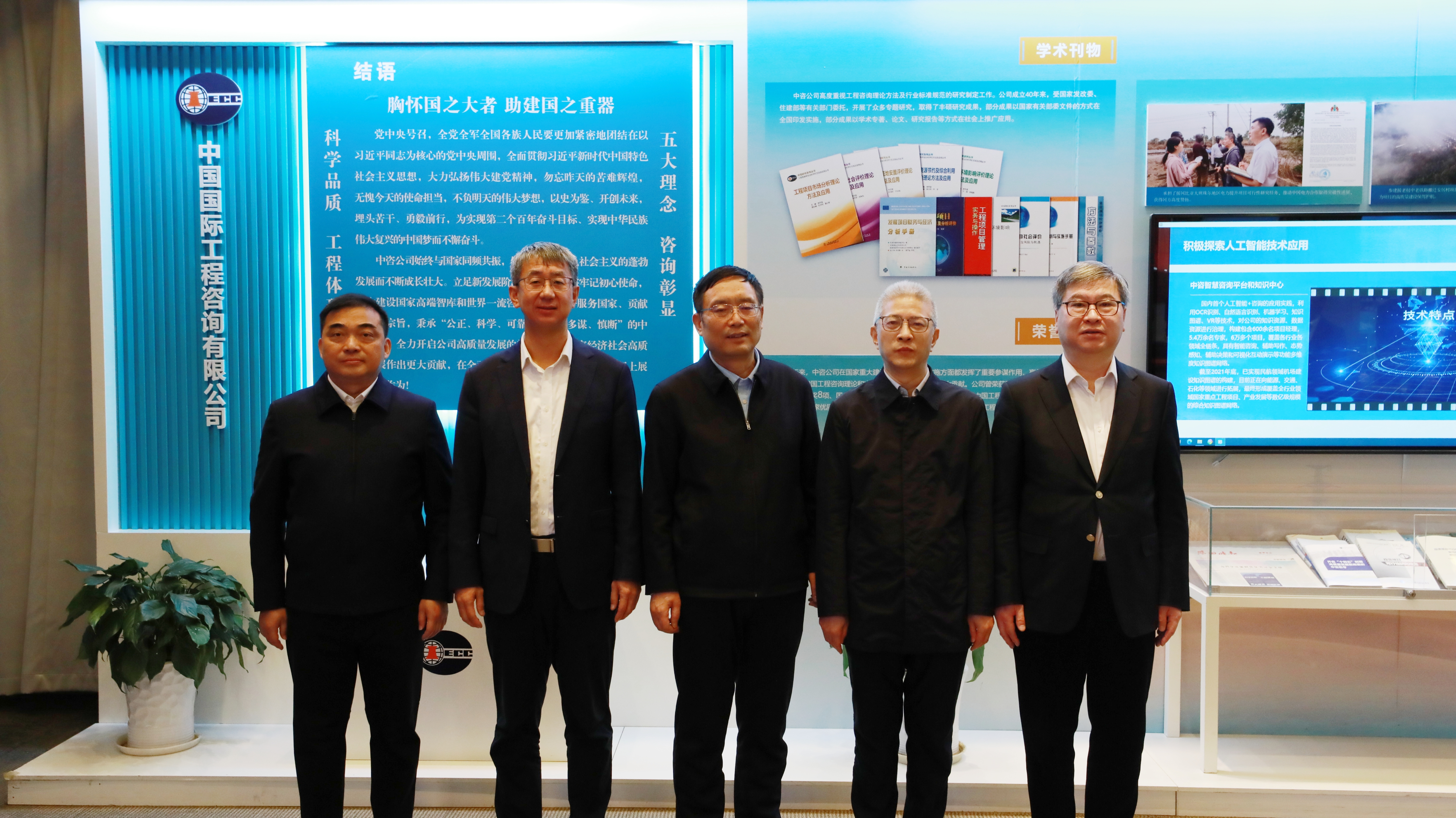 座談會(huì)前,茍護(hù)生和徐鵬一行共同觀看雙方宣傳片,參觀中咨公司高端智庫(kù)建設(shè)成果展。