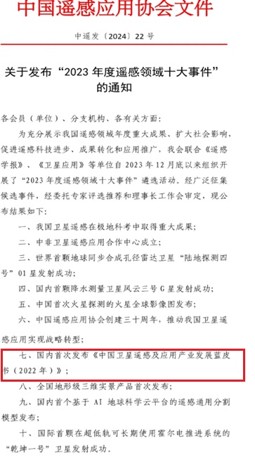 《中國衛(wèi)星遙感及應(yīng)用產(chǎn)業(yè)發(fā)展藍皮書(2023年)》將于12月23日在人民日報社隆重發(fā)布