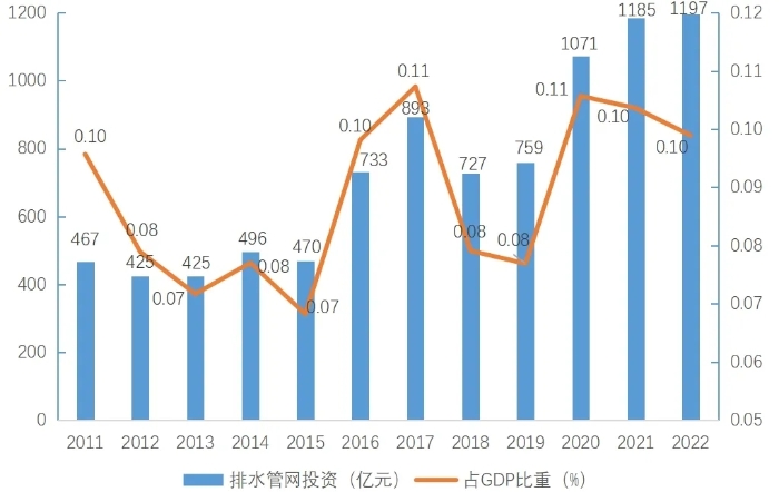 圖1  “十二五”以來全國排水管網(wǎng)投資情況