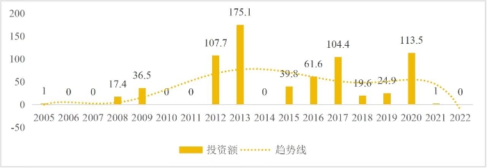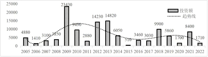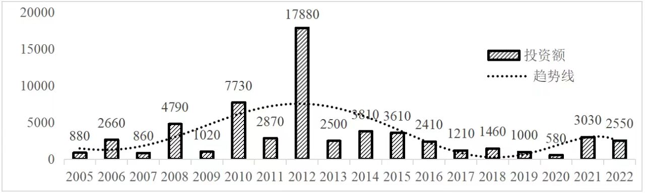 企業(yè)境外投資研究之二: 中央企業(yè)境外投資情況 楊凱越 編者按:根據(jù)商務(wù)部2023年10月發(fā)布的我國(guó)對(duì)外直接投資統(tǒng)計(jì)數(shù)據(jù),截至2022年,我國(guó)對(duì)外直接投資存量達(dá)27548.1億美元,當(dāng)年對(duì)外直接投資規(guī)模達(dá)1631.2億美元,居世界第二位。截至2022年底,中國(guó)2.9萬(wàn)家境內(nèi)投資者共設(shè)立境外企業(yè)4.66萬(wàn)家,分布在全球190個(gè)國(guó)家(地區(qū)),年末境外企業(yè)資產(chǎn)總額8.4萬(wàn)億美元。隨著“雙循環(huán)”戰(zhàn)略、“走出去”戰(zhàn)略和“一帶一路”倡議的深入推進(jìn)實(shí)施,對(duì)企業(yè)境外投資開(kāi)展系統(tǒng)研究,探索如何更高質(zhì)量地開(kāi)展境外投資,成為當(dāng)前一項(xiàng)重要和緊迫的任務(wù)。本公眾號(hào)將企業(yè)境外投資研究成果以系列文章的形式陸續(xù)刊發(fā),本文是研究報(bào)告的第二部分,供業(yè)界同仁參考。 一、總體情況 中央企業(yè)2013-2019年境外投資年均增速約15%,營(yíng)業(yè)收入增速保持在約4.5%。根據(jù)國(guó)務(wù)院國(guó)資委和社科院聯(lián)合發(fā)布的《中央企業(yè)海外社會(huì)責(zé)任藍(lán)皮書(shū)(2020)》,中央企業(yè)在境外投資發(fā)展時(shí),7%投資第一產(chǎn)業(yè),69%參與第二產(chǎn)業(yè),40%發(fā)展第三產(chǎn)業(yè)。截至2019年底,中央企業(yè)境外資產(chǎn)總額8.1萬(wàn)億元、所有者權(quán)益2.3萬(wàn)億元。其中,81家中央企業(yè)在“一帶一路”沿線承擔(dān)項(xiàng)目數(shù)量逾3400個(gè)。中央企業(yè)承擔(dān)“一帶一路”基礎(chǔ)設(shè)施項(xiàng)目數(shù)比率超過(guò)60%,合同投資額超過(guò)80%。 近年來(lái),中央企業(yè)境外投資及運(yùn)營(yíng)總體仍呈現(xiàn)較為平穩(wěn)的態(tài)勢(shì)。中央企業(yè)2013-2020年境外營(yíng)業(yè)收入總規(guī)模逾24萬(wàn)億元,利潤(rùn)總規(guī)模約6000億元。2021年,中央企業(yè)和單位對(duì)外非金融類(lèi)直接投資642.9億美元,占我國(guó)對(duì)外直接投資比重約36.0%,同比增長(zhǎng)30.7%,逾60%來(lái)自收益再投資。根據(jù)國(guó)務(wù)院國(guó)資委《中央企業(yè)海外發(fā)展報(bào)告(2023)》,截至2022年底,中央企業(yè)境外投資機(jī)構(gòu)和項(xiàng)目逾8000個(gè),境外員工125萬(wàn)人,境外資產(chǎn)總額近8萬(wàn)億元(比2019年略有下降),當(dāng)年境外投資規(guī)模3739億元。 表1 中央企業(yè)境外投資規(guī)模 單位:億美元 數(shù)據(jù)來(lái)源:商務(wù)部2016-2021年度中國(guó)對(duì)外直接投資統(tǒng)計(jì)公報(bào)。 本文根據(jù)中國(guó)全球投資追蹤(China Global Investment Tracker,CGIT)數(shù)據(jù)庫(kù),按照國(guó)務(wù)院國(guó)資委2023年中央企業(yè)名錄,對(duì)我國(guó)中央企業(yè)境外投資情況進(jìn)行了整理。因數(shù)據(jù)口徑不同,中央企業(yè)境外投資規(guī)模與前述商務(wù)部統(tǒng)計(jì)數(shù)據(jù)有所差異。根據(jù)CGIT數(shù)據(jù),中央企業(yè)境外投資在2013年達(dá)到峰值858.7億美元,此后呈下降趨勢(shì),2022年境外投資規(guī)模僅180.3億美元。 數(shù)據(jù)來(lái)源:CGIT數(shù)據(jù)庫(kù),作者整理。 圖1 2005-2022年中央企業(yè)境外投資規(guī)模 單位:億美元 根據(jù)CGIT數(shù)據(jù)庫(kù),中央企業(yè)2005-2022年各行業(yè)境外投資情況見(jiàn)圖2。其中,能源類(lèi)境外投資規(guī)模最高,為4460.1億美元;建筑工程類(lèi)(包括鐵路、公路等交通基礎(chǔ)設(shè)施建設(shè)類(lèi))境外投資規(guī)模其次,為1534億美元;金屬類(lèi)(含礦產(chǎn))境外投資排名第三為972.5億美元;公用事業(yè)類(lèi)境外投資規(guī)模第四,為702.5億美元;此外,中央企業(yè)境外投資涉及領(lǐng)域還包括旅游、健康、金融、科技、農(nóng)業(yè)、化工、物流、娛樂(lè)等。2018-2022年各行業(yè)境外投資情況見(jiàn)圖3。 數(shù)據(jù)來(lái)源:CGIT數(shù)據(jù)庫(kù),作者整理。 圖2 2005-2022年中央企業(yè)分行業(yè)境外投資規(guī)模 單位:億美元 數(shù)據(jù)來(lái)源:CGIT數(shù)據(jù)庫(kù),作者整理。 圖3 2018-2022年中央企業(yè)分行業(yè)境外投資規(guī)模 單位:百萬(wàn)美元 二、分行業(yè)情況 本文對(duì)2005年1月-2022年12月我國(guó)中央企業(yè)境外投資選取能源行業(yè)、建筑工程行業(yè)、金屬行業(yè)、公用事業(yè)、旅游業(yè)等投資規(guī)模位居前列的行業(yè),分行業(yè)情況進(jìn)行了整理。 (一)能源行業(yè) 2005-2022年中央企業(yè)能源行業(yè)境外投資情況見(jiàn)圖4。分析發(fā)現(xiàn),我國(guó)中央企業(yè)能源行業(yè)境外投資在2010年達(dá)到峰值后呈逐年下降的趨勢(shì)。 數(shù)據(jù)來(lái)源:CGIT數(shù)據(jù)庫(kù),作者整理。 圖4 能源行業(yè)2005-2022年中央企業(yè)境外投資規(guī)模 單位:億美元 (二)建筑工程行業(yè) 2005-2022年中央企業(yè)建筑工程行業(yè)境外投資情況見(jiàn)圖5。分析發(fā)現(xiàn),建筑工程行業(yè)境外投資在2009年達(dá)到峰值,此后呈逐年下降。 數(shù)據(jù)來(lái)源:CGIT數(shù)據(jù)庫(kù),作者整理。 圖5 建筑工程行業(yè)2005-2022年中央企業(yè)境外投資規(guī)模 單位:億美元 (三)金屬行業(yè) 2005-2022年中央企業(yè)金屬行業(yè)境外投資情況見(jiàn)圖6