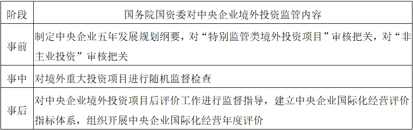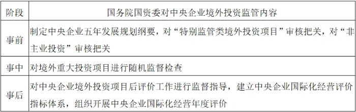 表2 國務(wù)院國資委境外投資監(jiān)管主要內(nèi)容