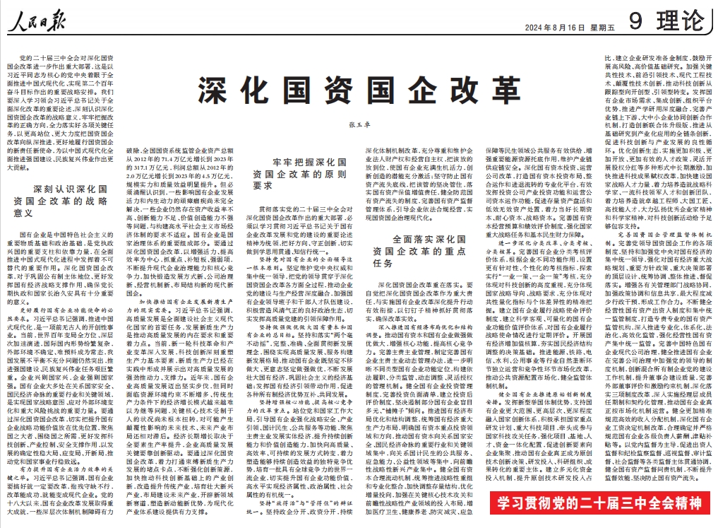 《人民日報》刊發(fā)張玉卓署名文章:深化國資國企改革