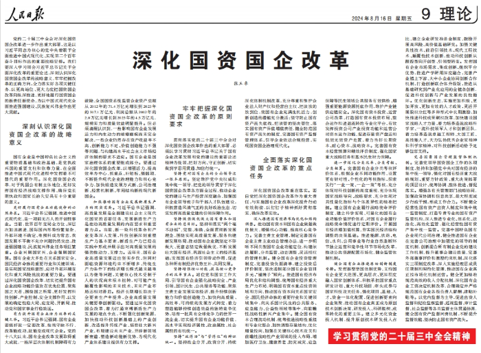 黨的二十屆三中全會對深化國資國企改革進一步作出重大部署,這是以習(xí)近平同志為核心的黨中央著眼于全面推進中國式現(xiàn)代化、實現(xiàn)第二個百年奮斗目標作出的重要戰(zhàn)略安排。我們要深入學(xué)習(xí)領(lǐng)會習(xí)近平總書記關(guān)于全面深化改革的重要論述,深刻認識深化國資國企改革的戰(zhàn)略意義,牢牢把握改革的正確方向,全力落實好各項關(guān)鍵任務(wù),以更高站位、更大力度把國資國企改革向縱深推進,更好地履行國資國企的新責(zé)任新使命,為以中國式現(xiàn)代化全面推進強國建設(shè)、民族復(fù)興偉業(yè)作出更大貢獻。